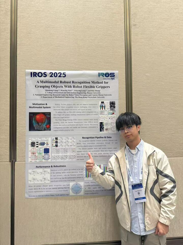 2025 年 IEEE/RSJ 智能机器人与系统国际会议(IROS 2025)于 10 月 20 日在中国杭州召开。作为全球机器人领域最具影响力的会议之一,IROS 2025 汇聚了来自世界各地的顶尖团队与前沿成果。会议期间,团队多模态感知小组博士生 欧阳松涛 和 肖文星 分别分享了研究成果。